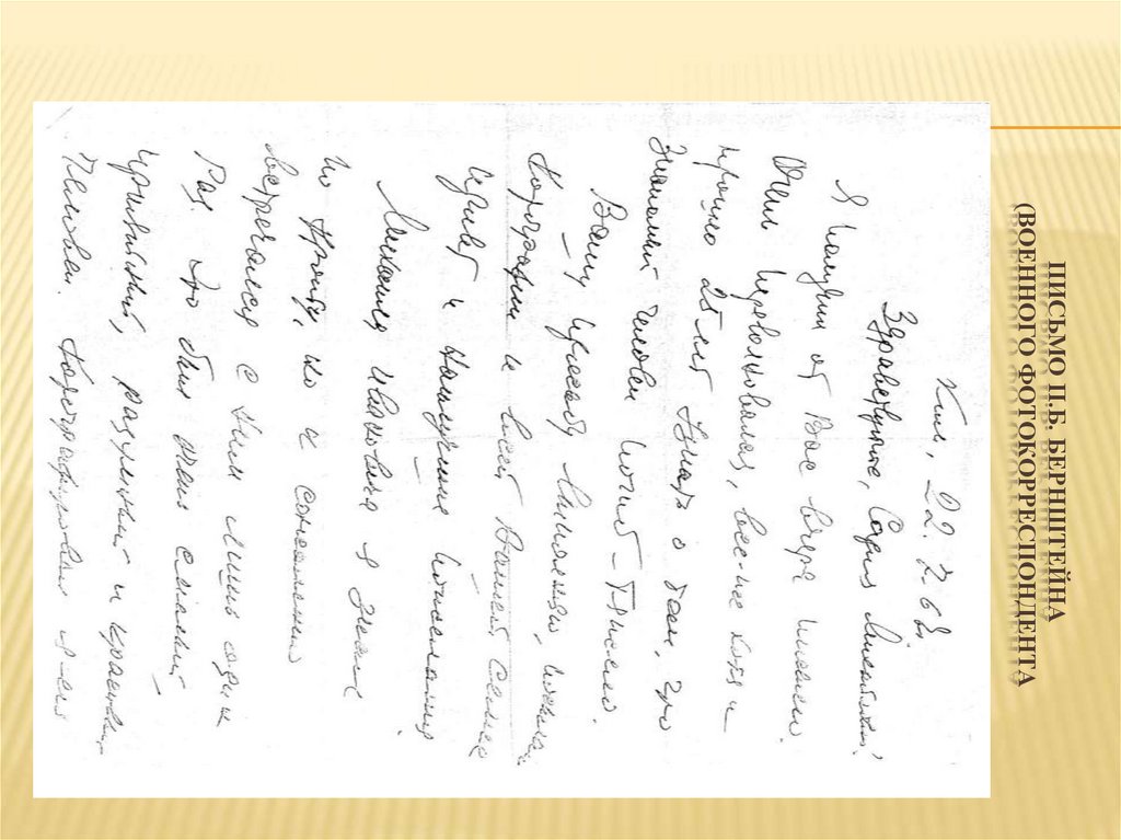 ПИСЬМО П.Б. БЕРНШТЕЙНА(ВОЕННОГО ФОТОКОРРЕСПОНДЕНТА