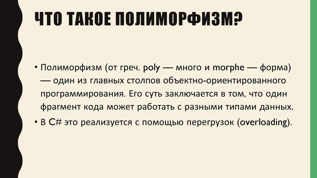 ЧТО ТАКОЕ ПОЛИМОРФИЗМ?• Полиморфизм (от греч. poly — много и morphe — форма)
