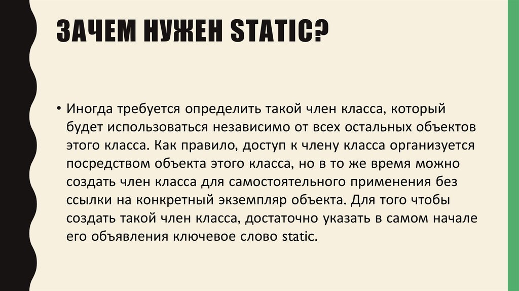 ЗАЧЕМ НУЖЕН STATIC?• Иногда требуется определить такой член класса, который