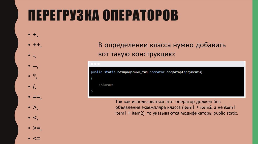 ПЕРЕГРУЗКА ОПЕРАТОРОВ• +,