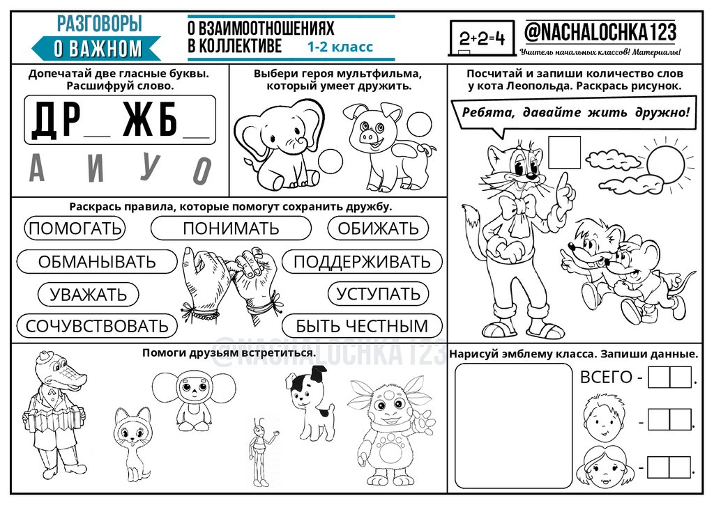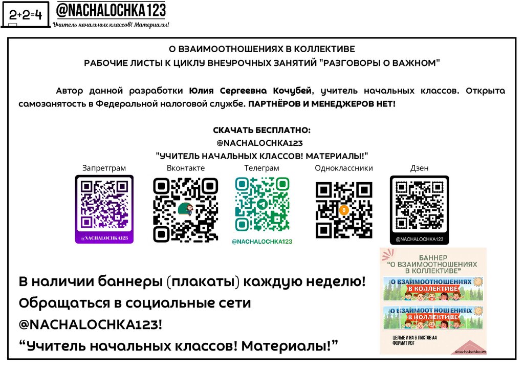 О ВЗАИМООТНОШЕНИЯХ В КОЛЛЕКТИВЕРАБОЧИЕ ЛИСТЫ К ЦИКЛУ ВНЕУРОЧНЫХ ЗАНЯТИЙ "РАЗГОВОРЫ О ВАЖНОМ"