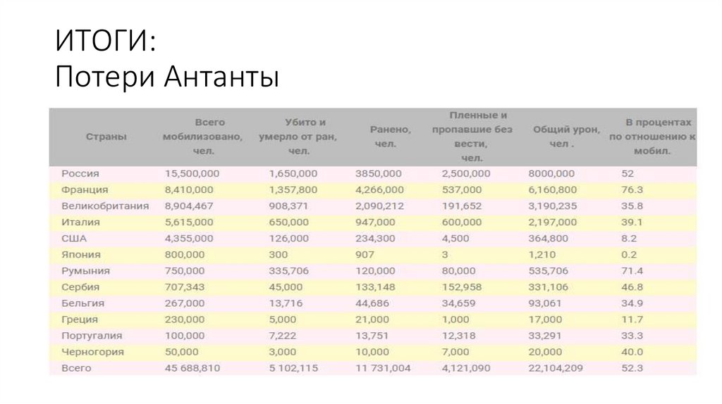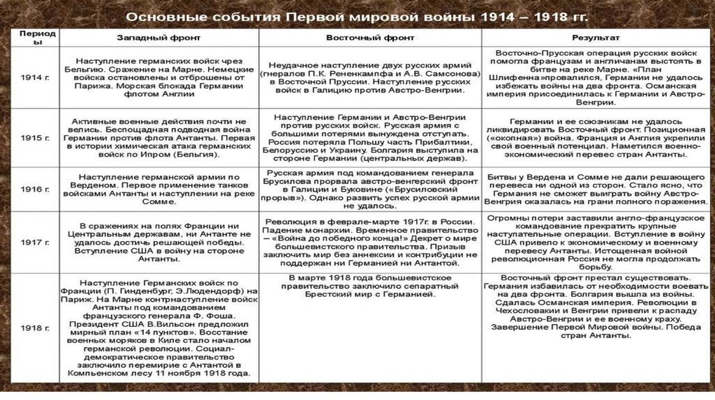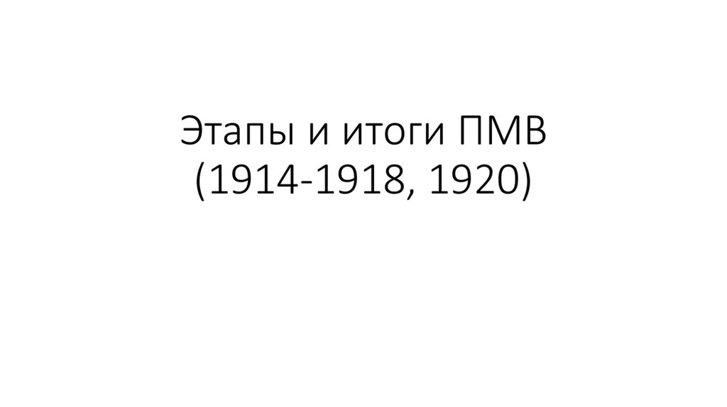 Этапы и итоги ПМВ(1914-1918, 1920)