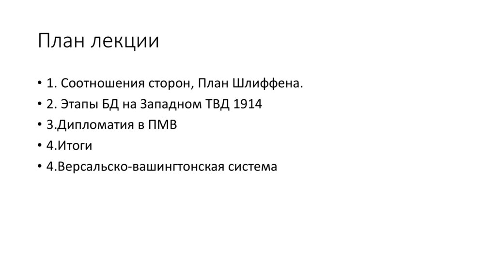 План лекции• 1. Соотношения сторон, План Шлиффена.