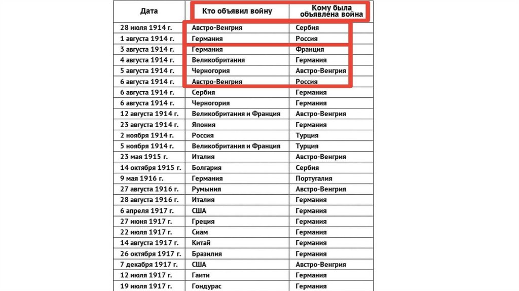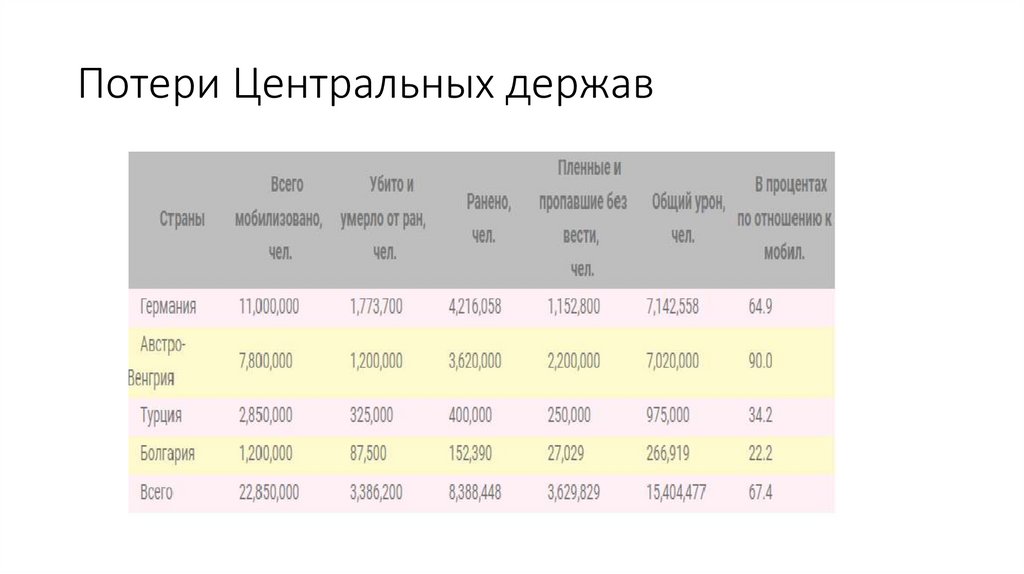 Этапы и итоги ПМВ (1914-1918, 1920)