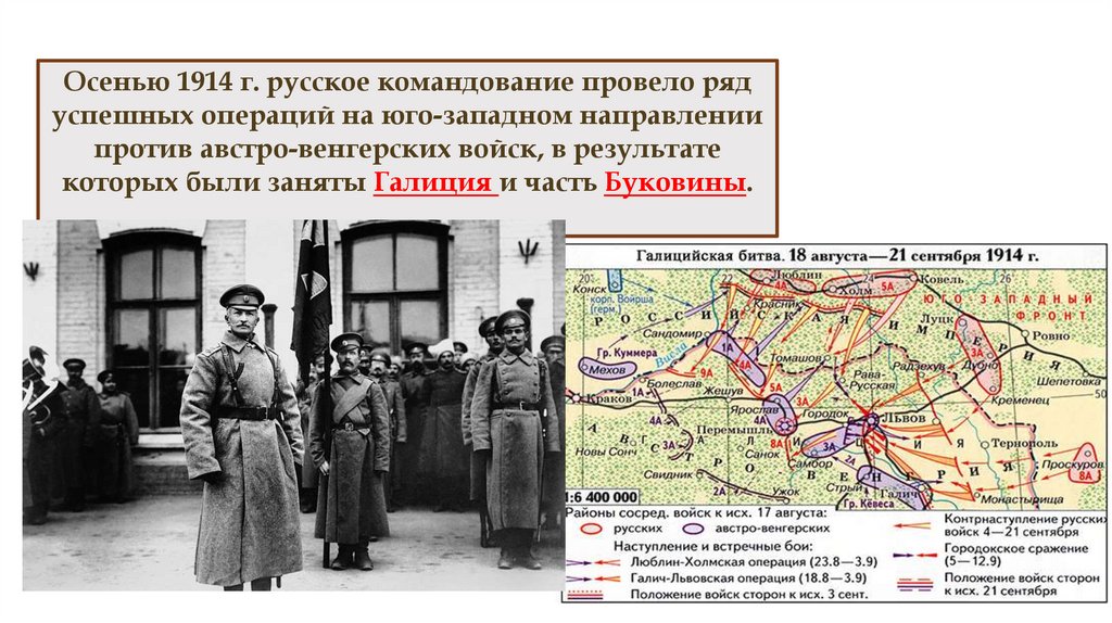 Осенью 1914 г. русское командование провело рядуспешных операций на юго-западном направлении