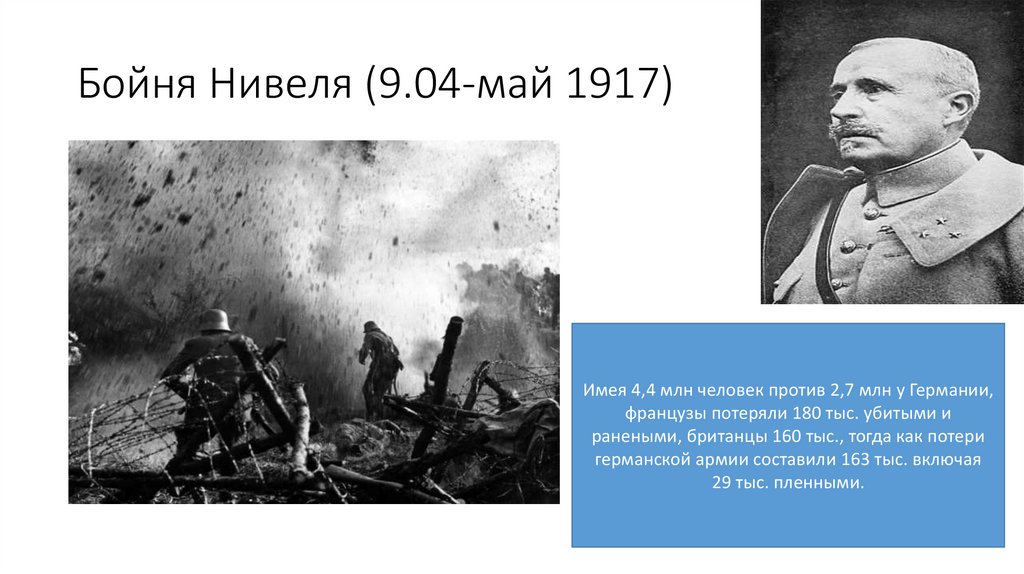 Бойня Нивеля (9.04-май 1917)Имея 4,4 млн человек против 2,7 млн у Германии,