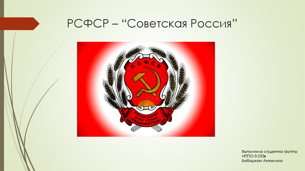РСФСР – “Советская Россия”Выполнила студентка группы