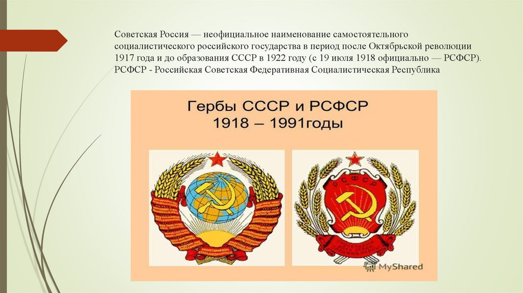 Советская Россия — неофициальное наименование самостоятельногосоциалистического российского государства в период после Октябрьской революции