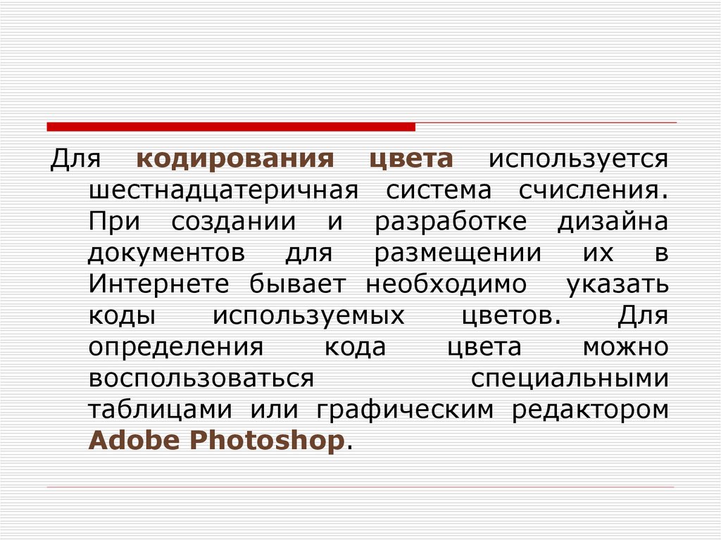 Для кодирования цвета используетсяшестнадцатеричная система счисления.