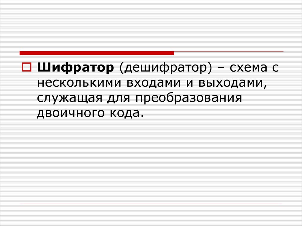Шифратор (дешифратор) – схема снесколькими входами и выходами,