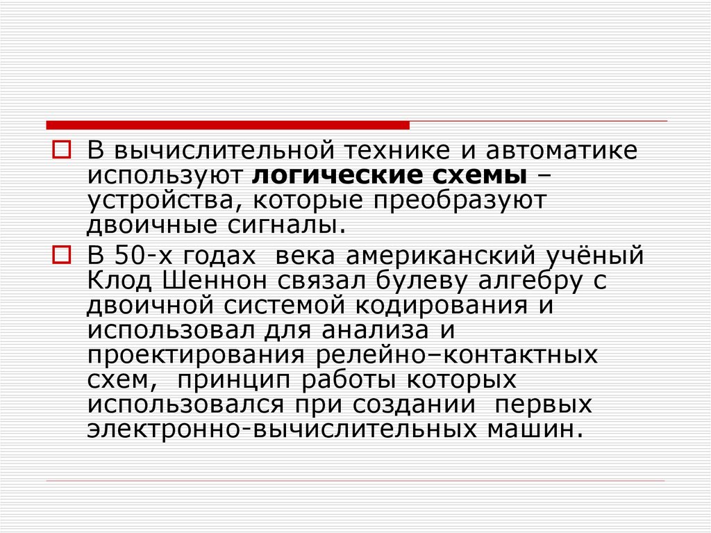 В вычислительной технике и автоматикеиспользуют логические схемы –