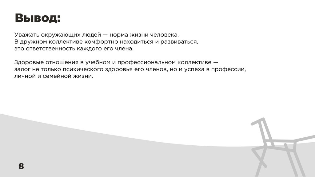 Вывод:Уважать окружающих людей — норма жизни человека.