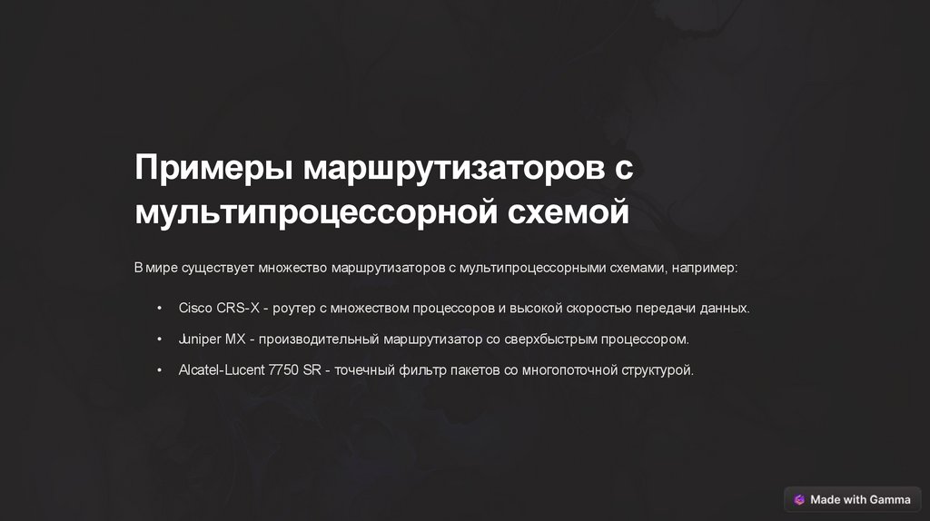 В мире существует множество маршрутизаторов с мультипроцессорными схемами, например: