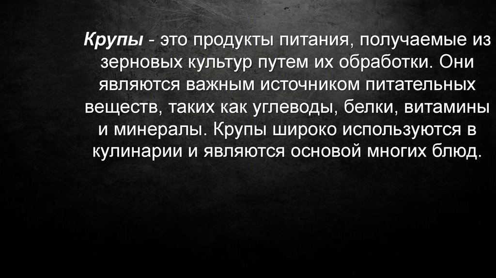 Крупы - это продукты питания, получаемые иззерновых культур путем их обработки. Они