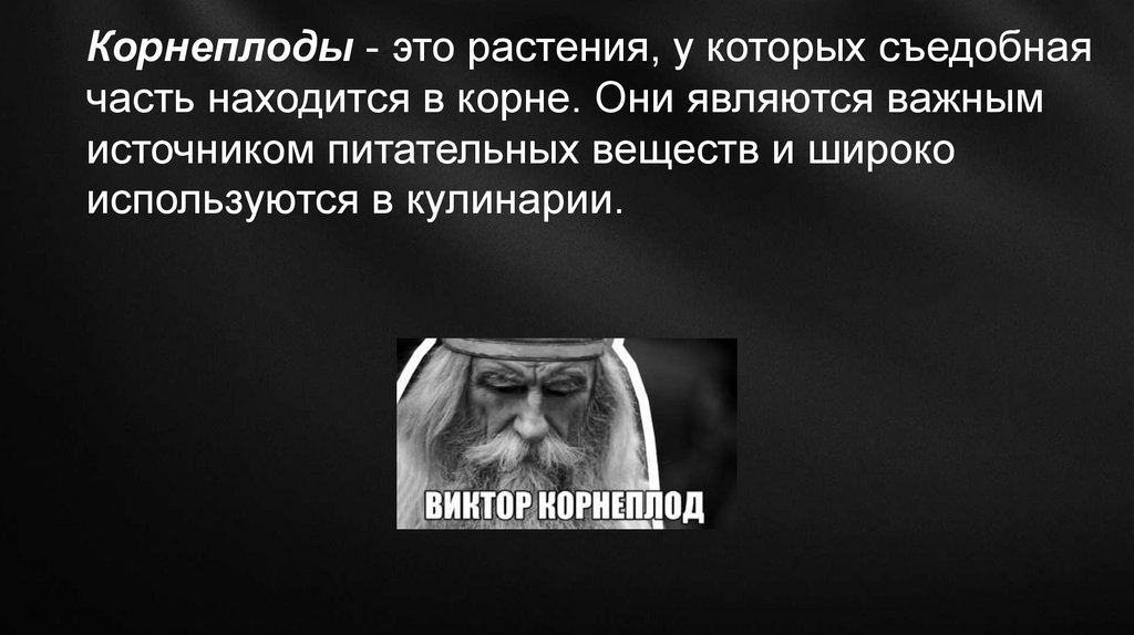 Корнеплоды - это растения, у которых съедобнаячасть находится в корне. Они являются важным