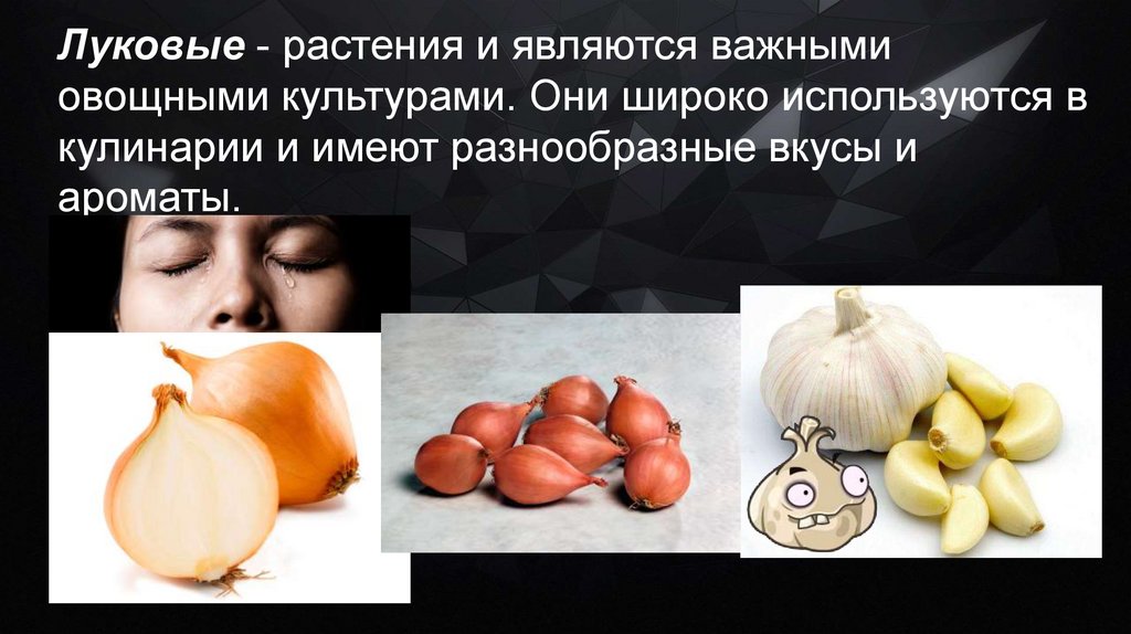 Луковые - растения и являются важнымиовощными культурами. Они широко используются в