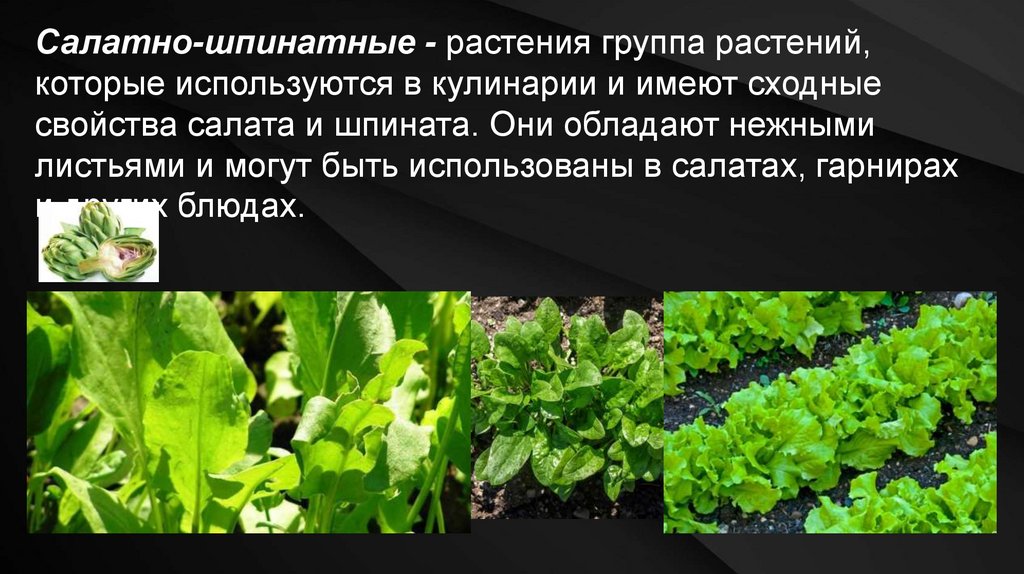 Салатно-шпинатные - растения группа растений,которые используются в кулинарии и имеют сходные