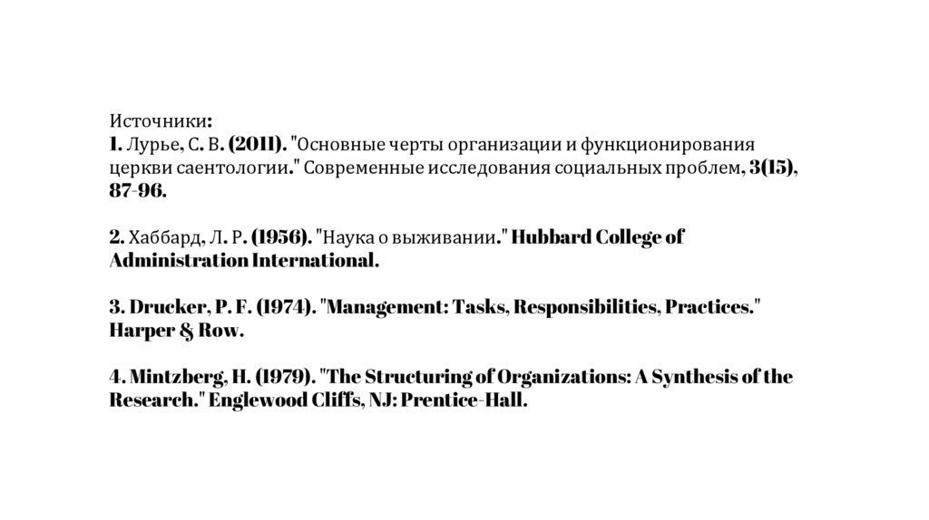 2. Хаббард, Л. Р. (1956). "Наука о выживании." Hubbard College of