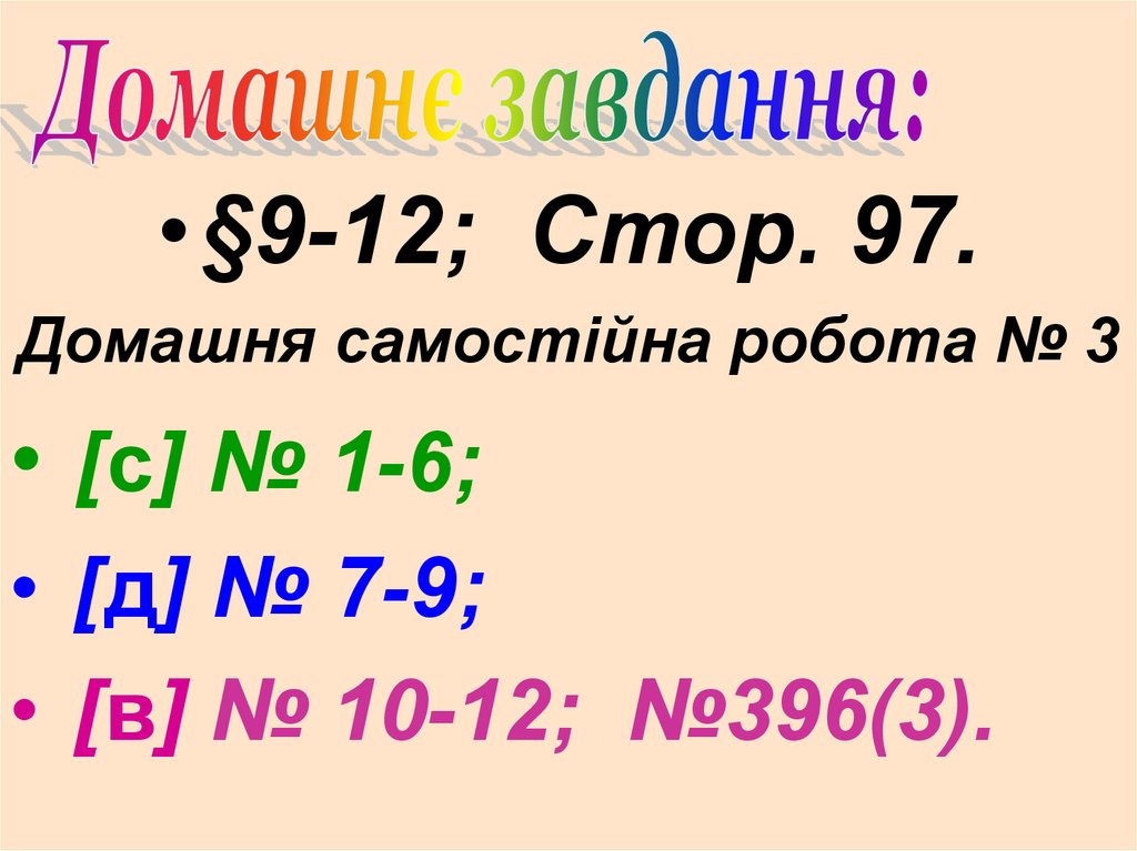 •§9-12; Стор. 97.Домашня самостійна робота № 3