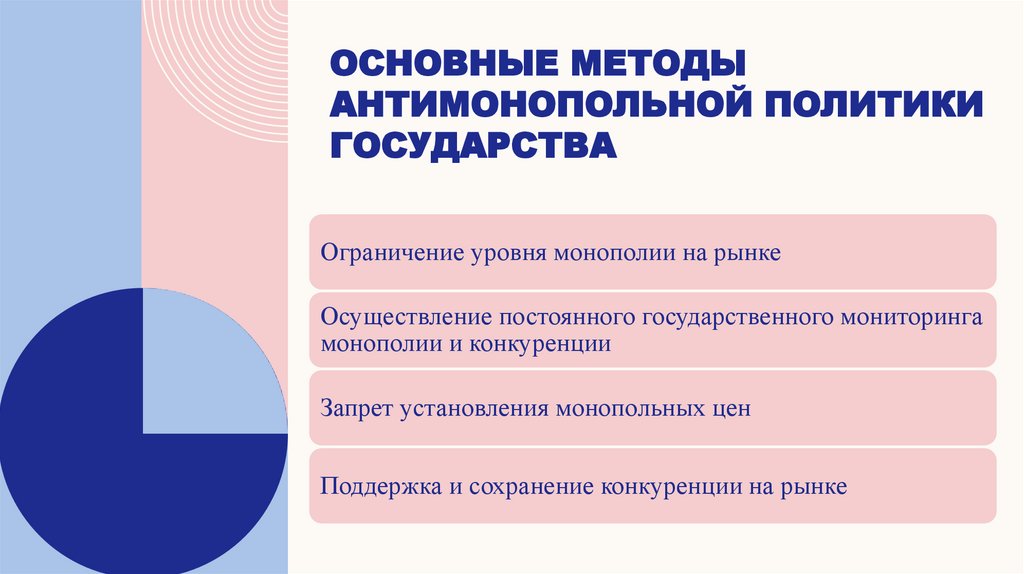 ОСНОВНЫЕ МЕТОДЫАНТИМОНОПОЛЬНОЙ ПОЛИТИКИ