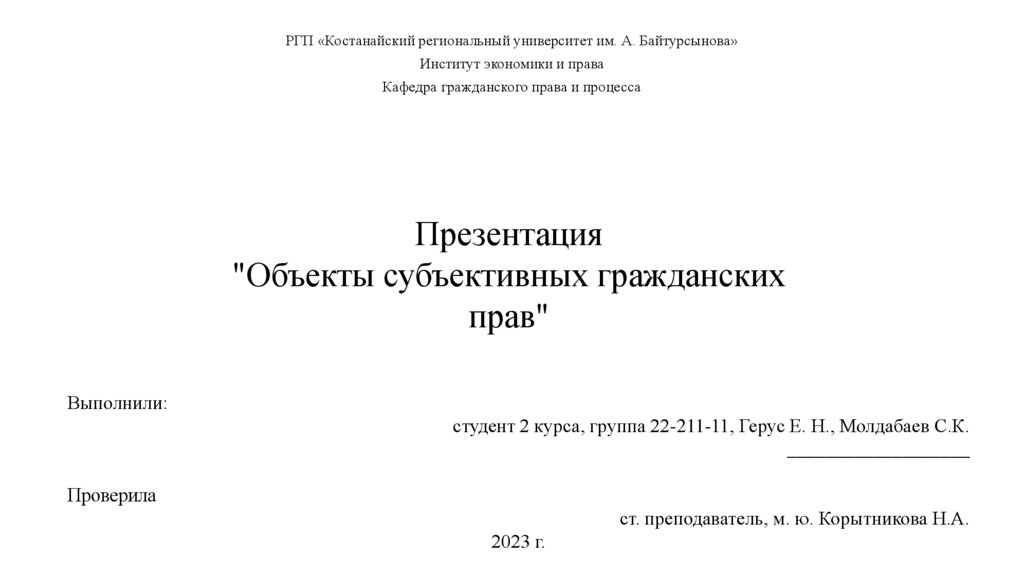 Объекты субъективных гражданских прав