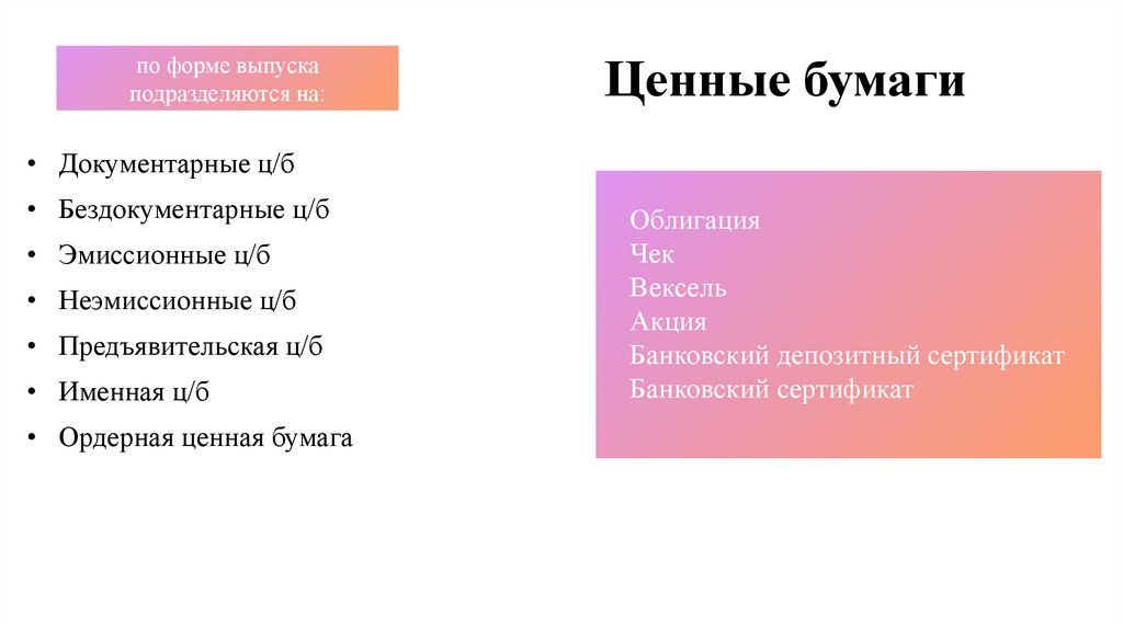 Виды ценных бумаг