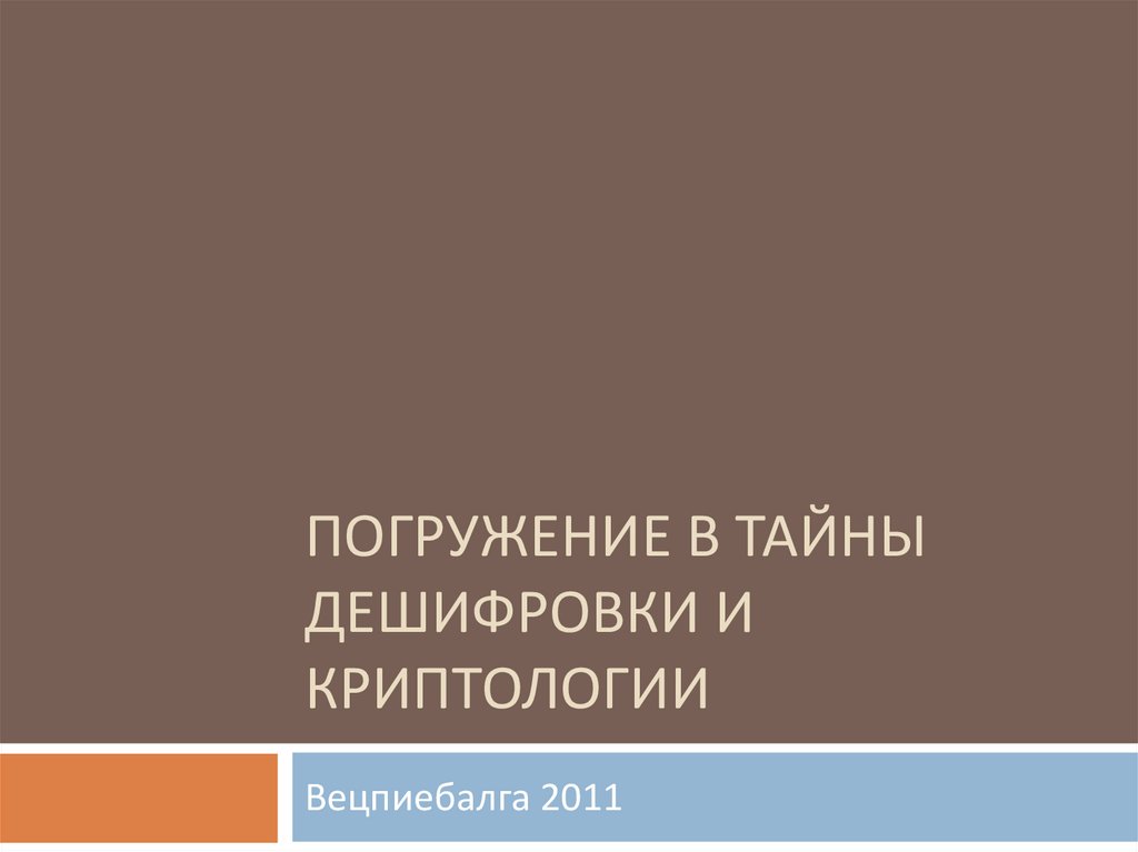 ПОГРУЖЕНИЕ В ТАЙНЫДЕШИФРОВКИ И