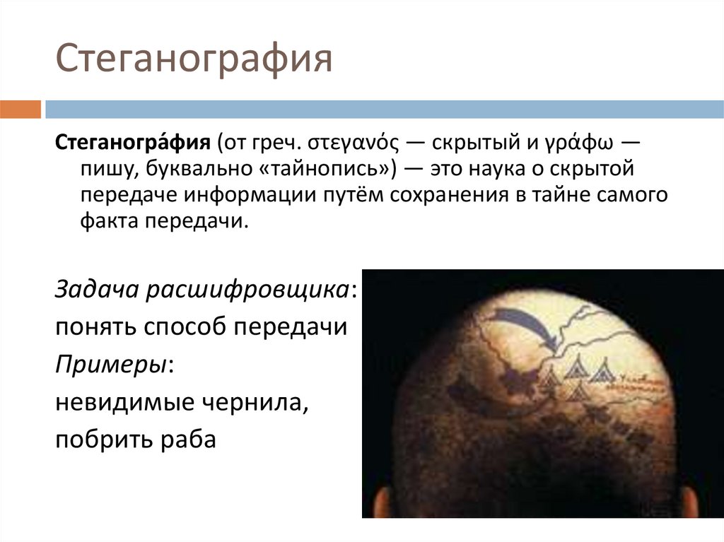 СтеганографияСтеганогра́фия (от греч. στεγανός — скрытый и γράφω —