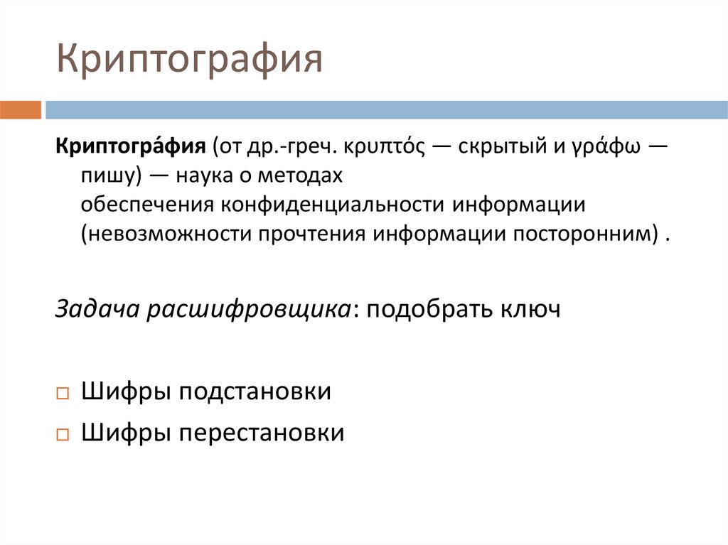 КриптографияКриптогра́фия (от др.-греч. κρυπτός — скрытый и γράφω —