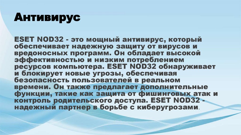 АнтивирусESET NOD32 - это мощный антивирус, который
