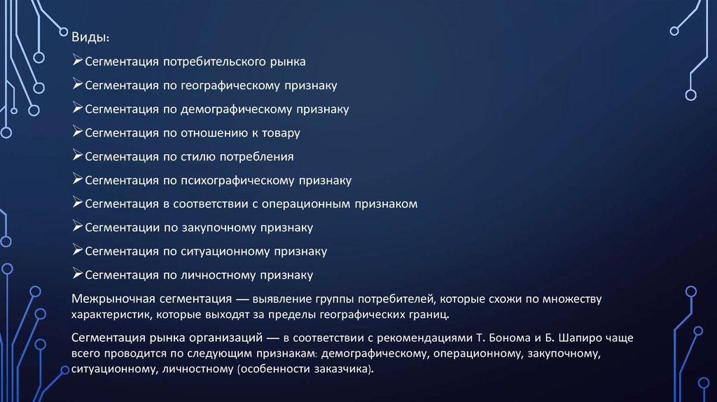 Сегментация рынка организаций — в соответствии с рекомендациями Т. Бонома и Б. Шапиро чаще