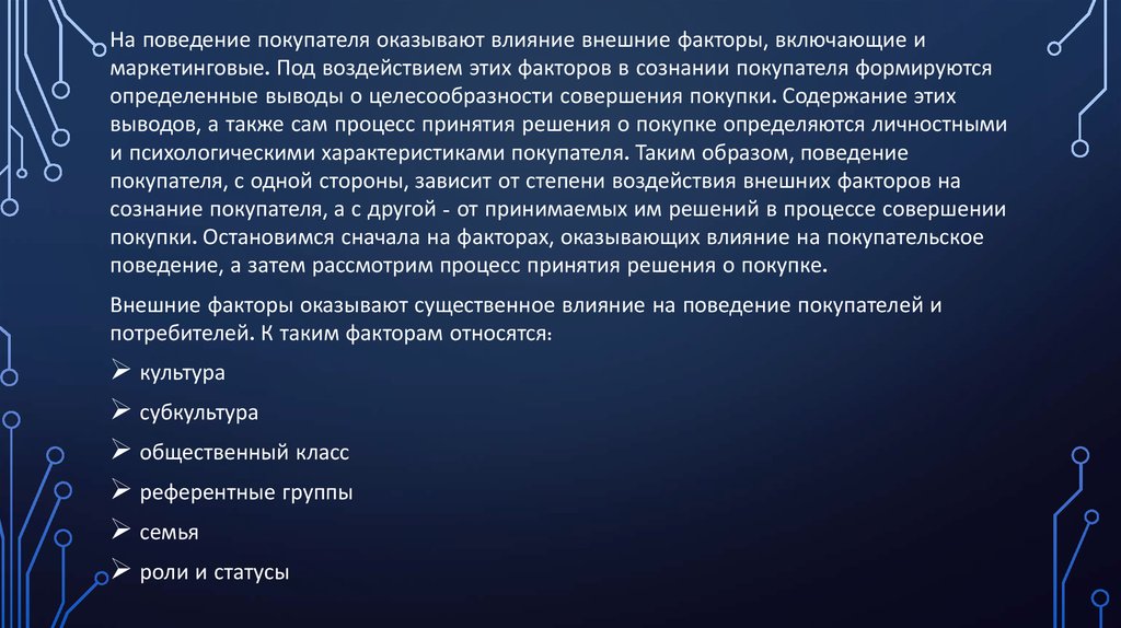 Внешние факторы оказывают существенное влияние на поведение покупателей и