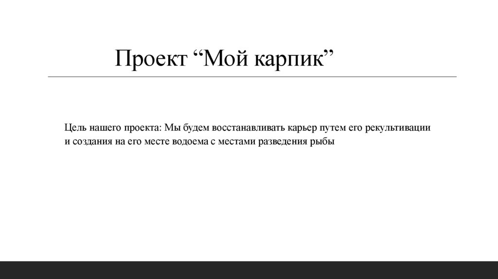 Проект “Мой карпик”Цель нашего проекта: Мы будем восстанавливать карьер путем его рекультивации
