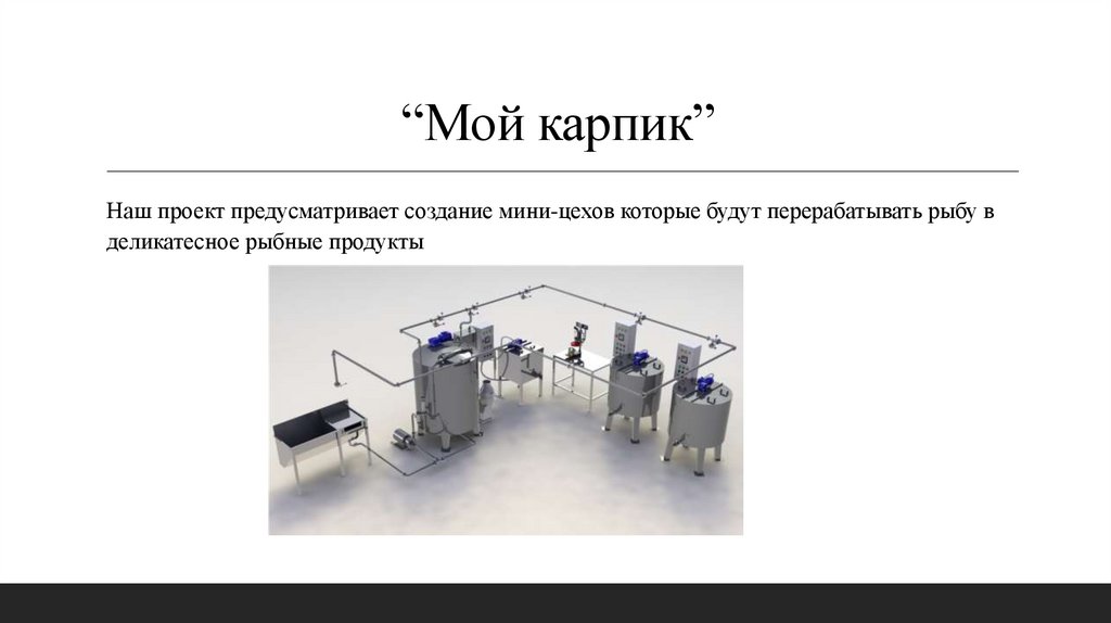 “Мой карпик”Наш проект предусматривает создание мини-цехов которые будут перерабатывать рыбу в