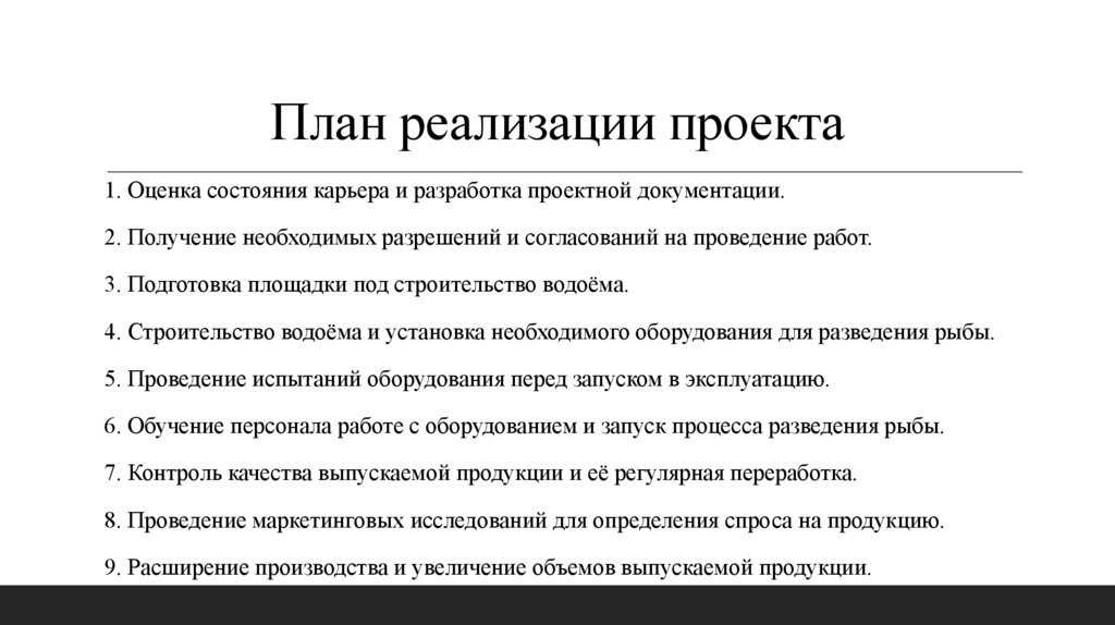 План реализации проекта1. Оценка состояния карьера и разработка проектной документации.