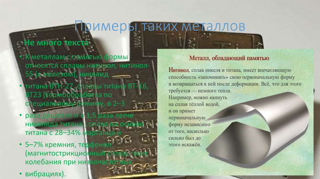 относятся сплавы нитинол, нитинол55 (с железом), никелид