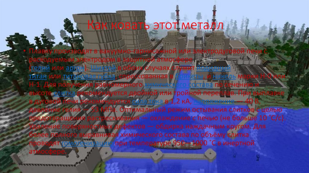 Как ковать этот металл• Плавку производят в вакуумно-гарнисажной или электродуговой печи с