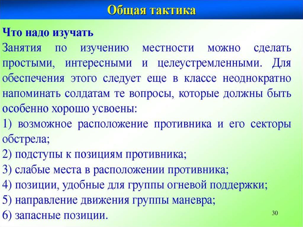 Действия солдата в бою. Действия военнослужащего при наблюдении за противником и местностью (Занятие 5.2)