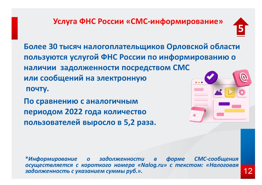 осуществляется с короткого номера «Nalog.ru» с текстом: «Налоговая