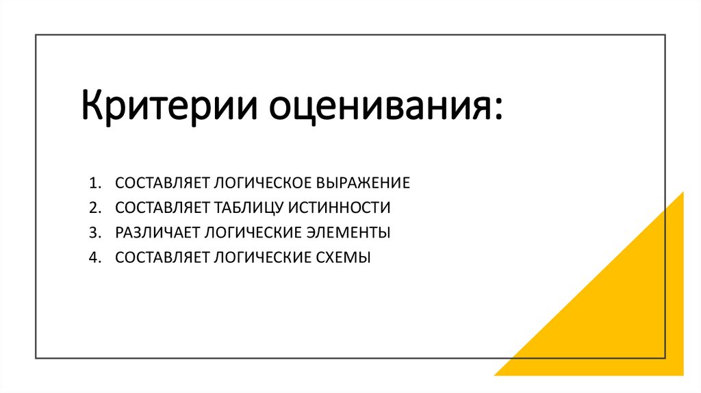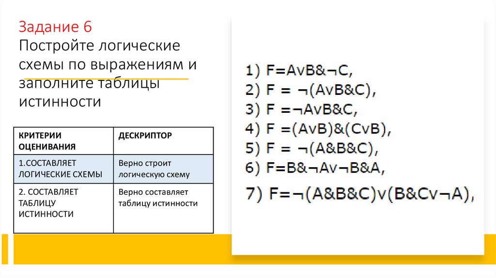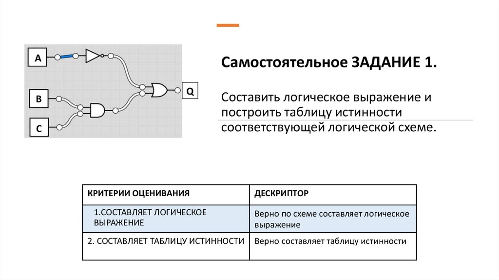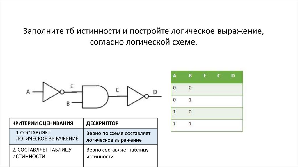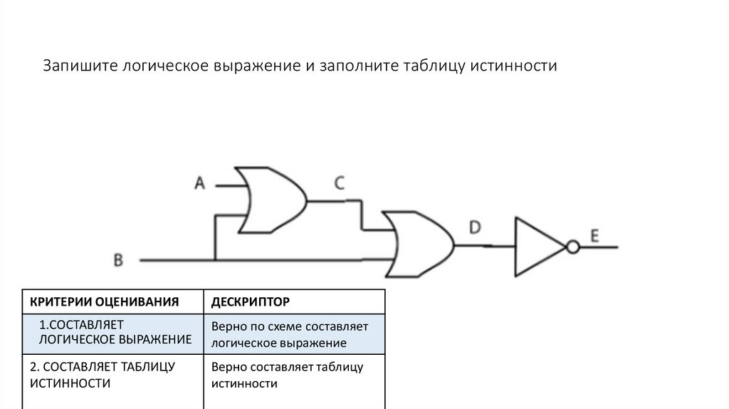 Запишите логическое выражение и заполните таблицу истинностиКРИТЕРИИ ОЦЕНИВАНИЯ
