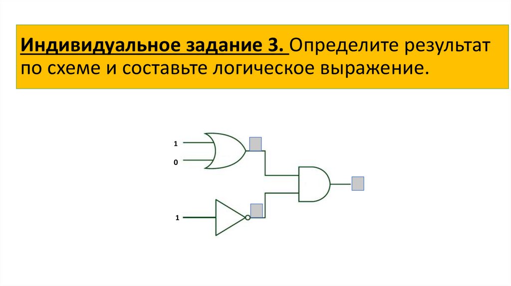 Индивидуальное задание 3. Определите результатпо схеме и составьте логическое выражение.
