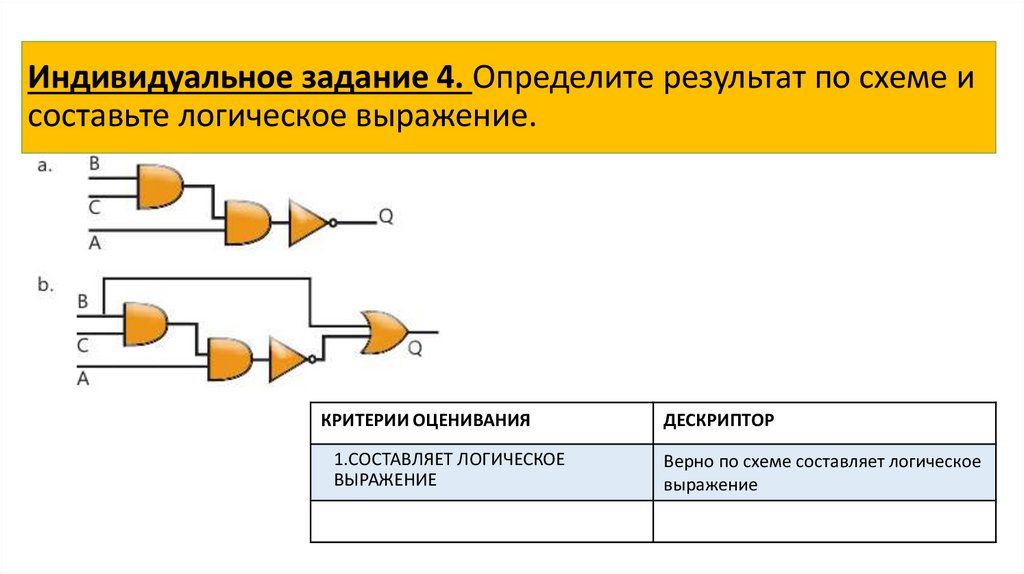 Индивидуальное задание 4. Определите результат по схеме исоставьте логическое выражение.