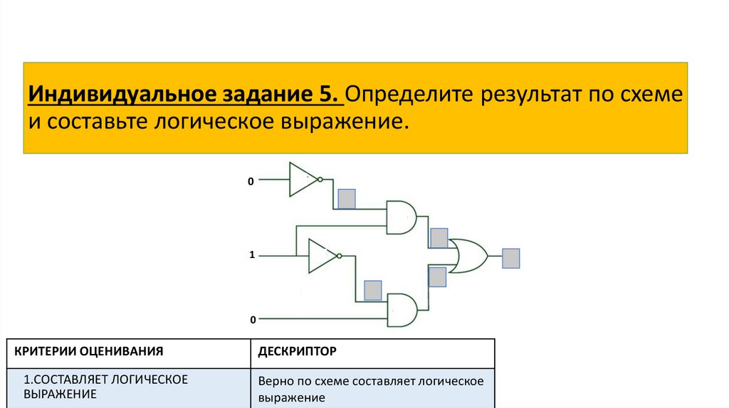 Индивидуальное задание 5. Определите результат по схемеи составьте логическое выражение.