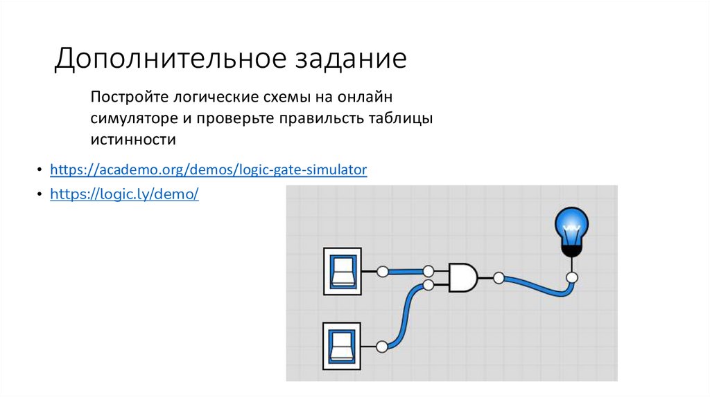 Дополнительное заданиеПостройте логические схемы на онлайн