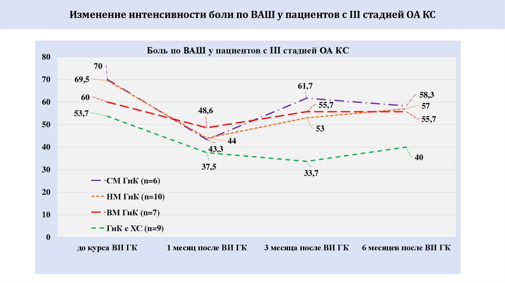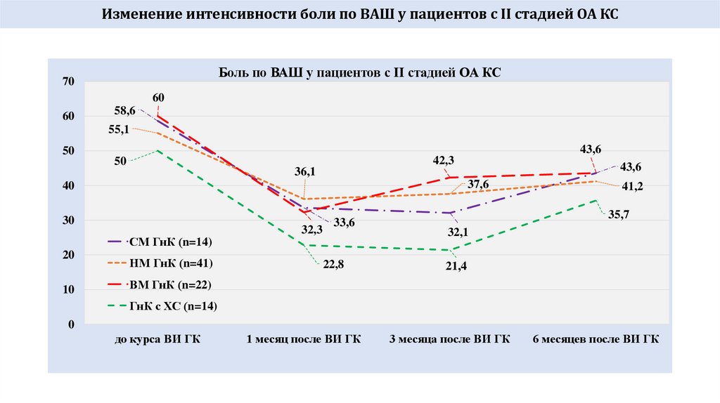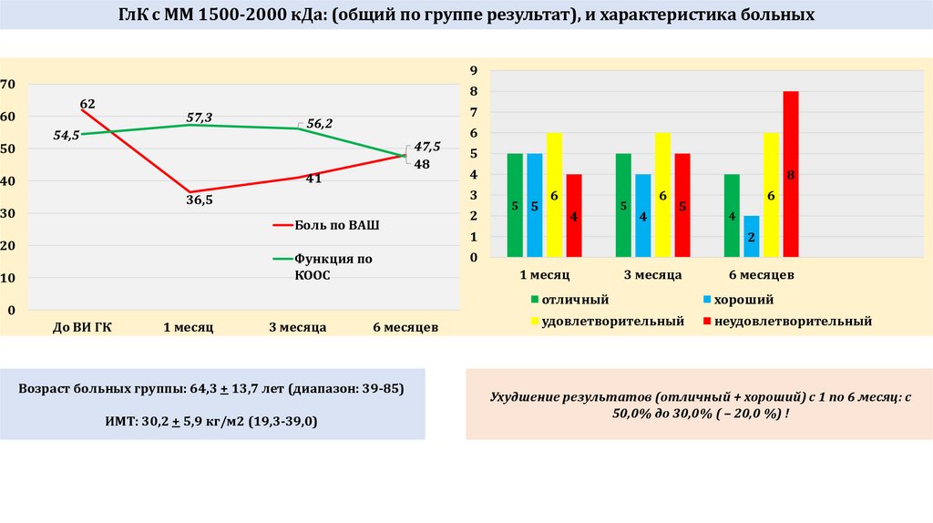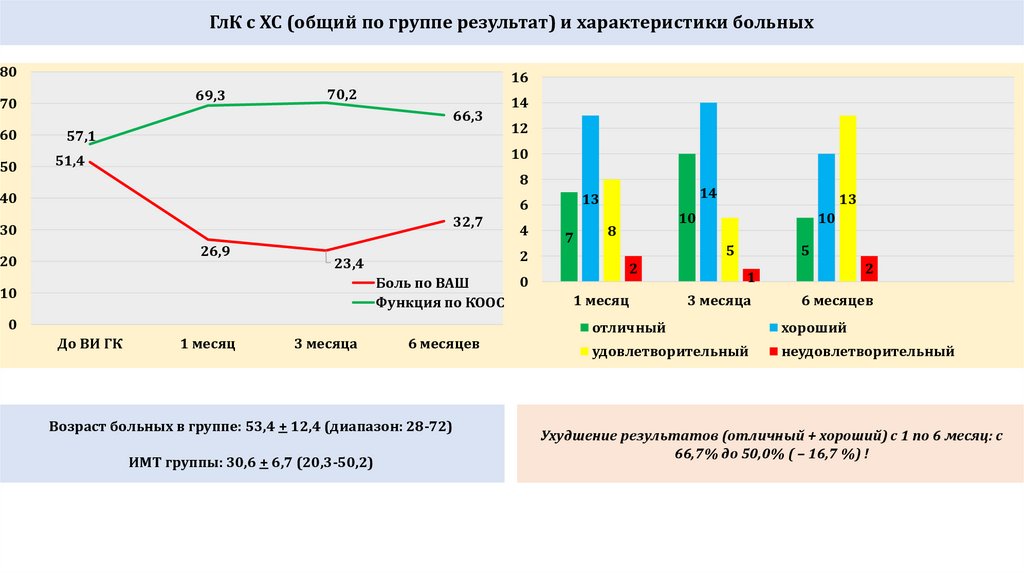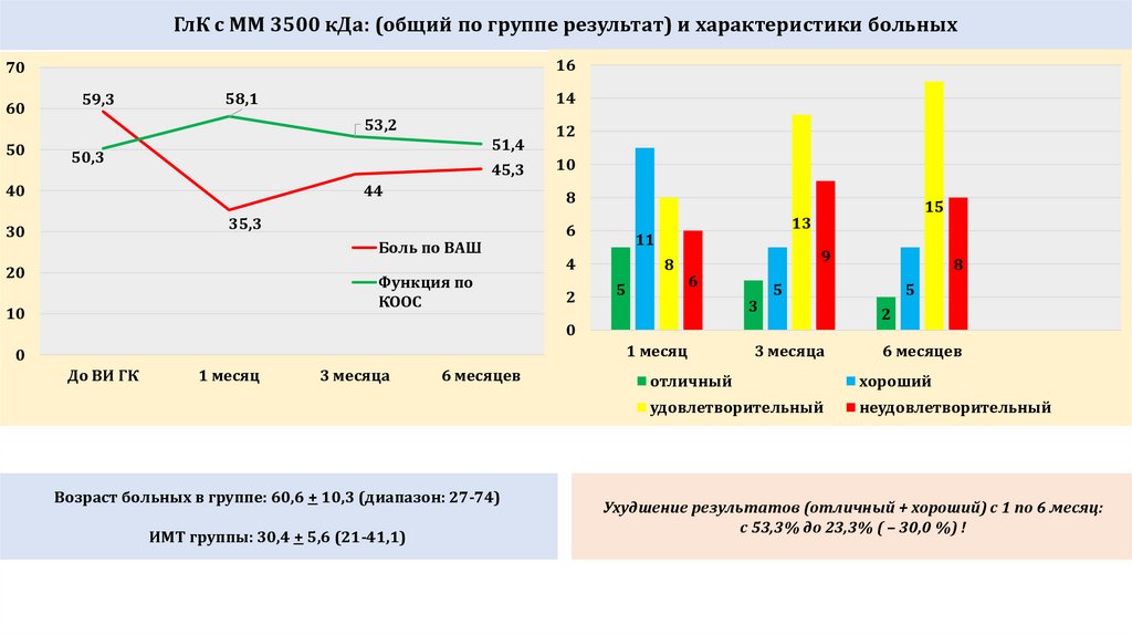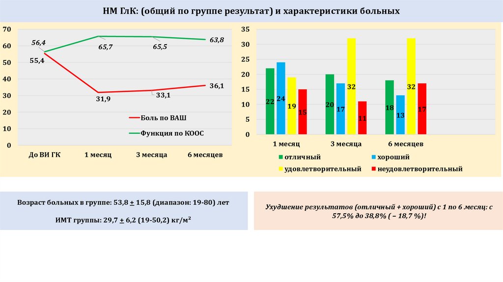 НМ ГлК: (общий по группе результат) и характеристики больных70