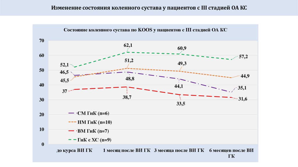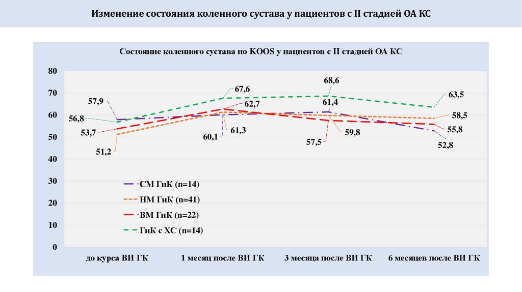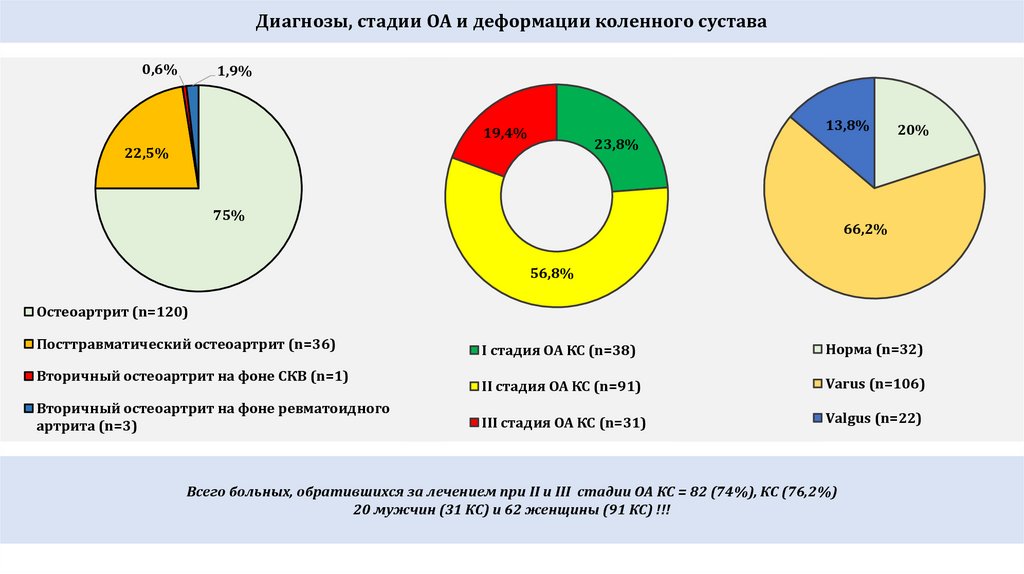 Всего больных, обратившихся за лечением при II и III стадии ОА КС = 82 (74%), КС (76,2%)