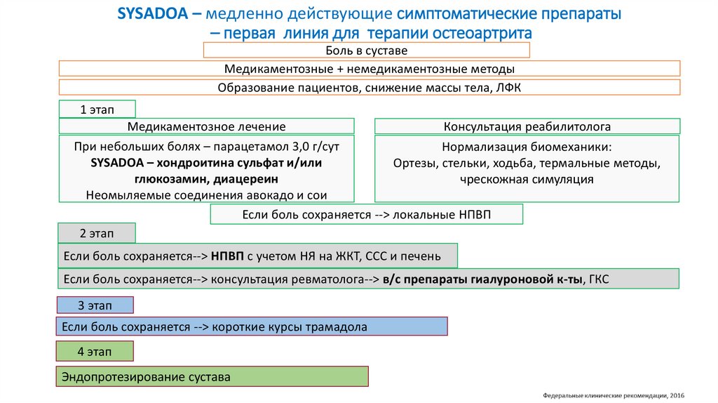 SYSADOA – медленно действующие симптоматические препараты– первая линия для терапии остеоартрита