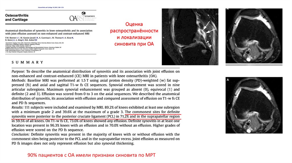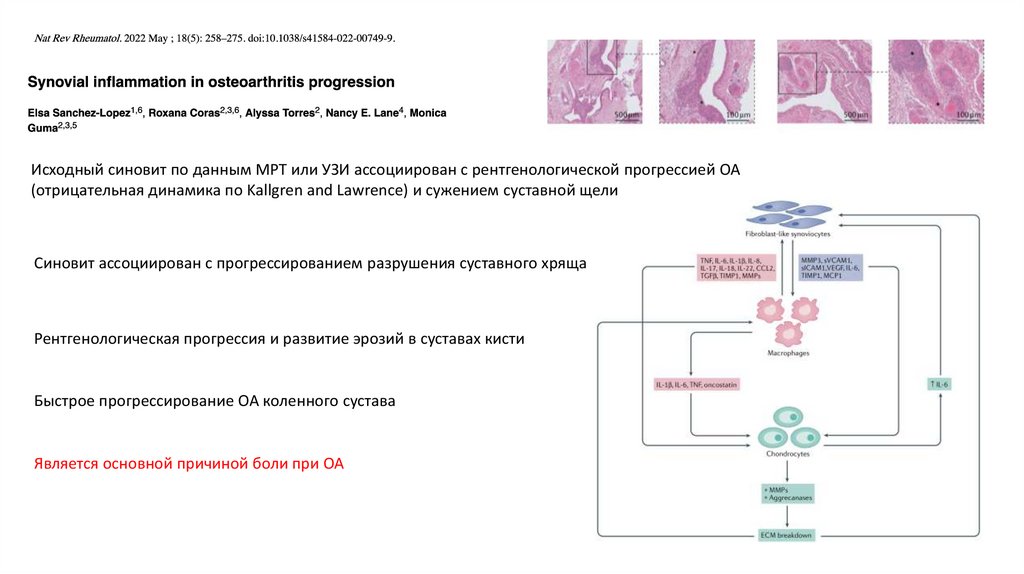 выраженное воспаление и синовит.