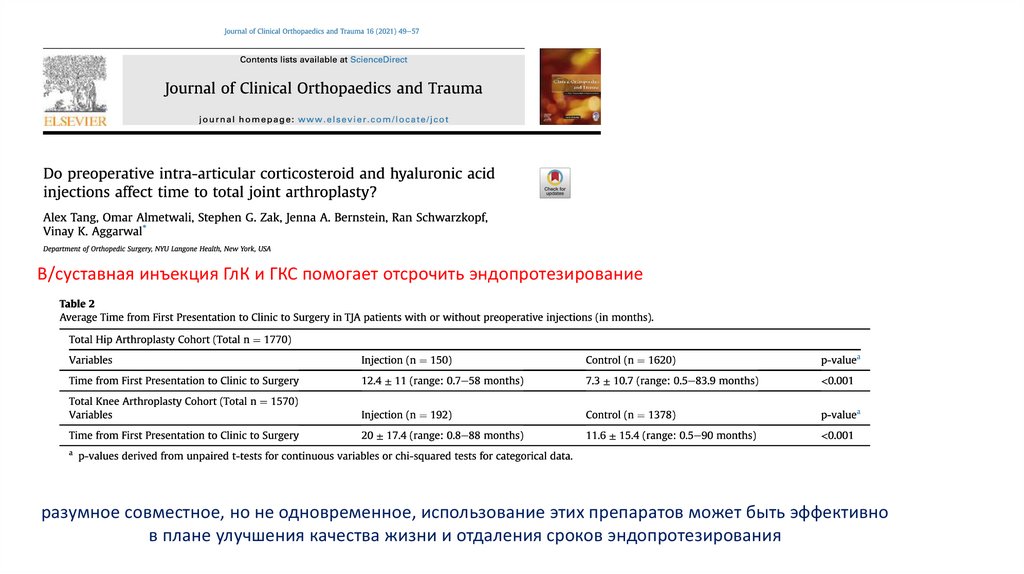 В/суставная инъекция ГлК и ГКС помогает отсрочить эндопротезированиеразумное совместное, но не одновременное, использование этих препаратов может быть эффективно