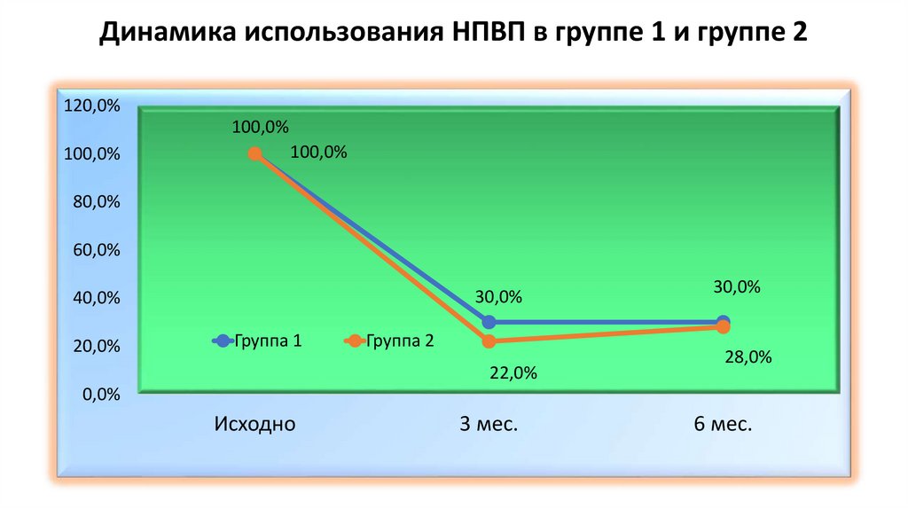 Динамика использования НПВП в группе 1 и группе 2120,0%
